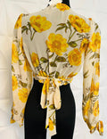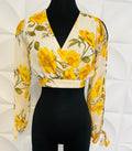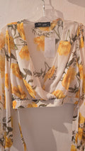 Blusa con estampado floral. Elástico en la cintura y tira para amarre. Tamaño corre al