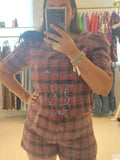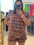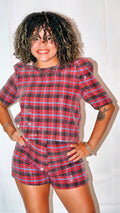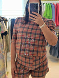 Conjunto de pantalón corto y blusa con manga en lentejuelas