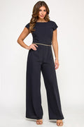 El mono Mae sin mangas con cuello barco combina elegancia y comodidad en una sola prenda. Su diseño estilizado incluye un cinturón que define la cintura, realzando tu silueta con un toque cómodo. Ideal para destacar en cualquier evento, este mono es la elección perfecta para un look moderno y chic.