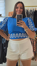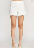 Pantalón corto con detalles en cintura y ruedo. Tiene poco stretch, la cintura tiene faja fija, no estira. Tiene zipper invisible al lado. Corre justo al size. Si estas entre dos size, te recomiendo el más grande.