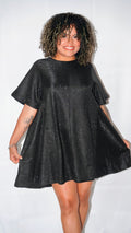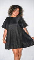 Traje tipo saco de brillo con mangas. Corte ancho. Tiene bolsillo, no tiene aberturas. Corre al size.