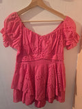 Romper cintura ajustada. Elástico en las mangas. Zipper atrás. Corre pequeño, como un size medium.