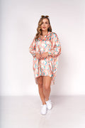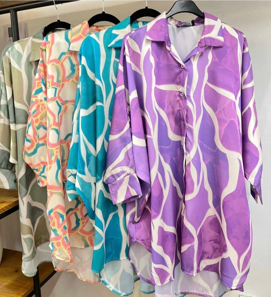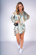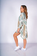 Traje de satin manga 3/4 con print abstracto